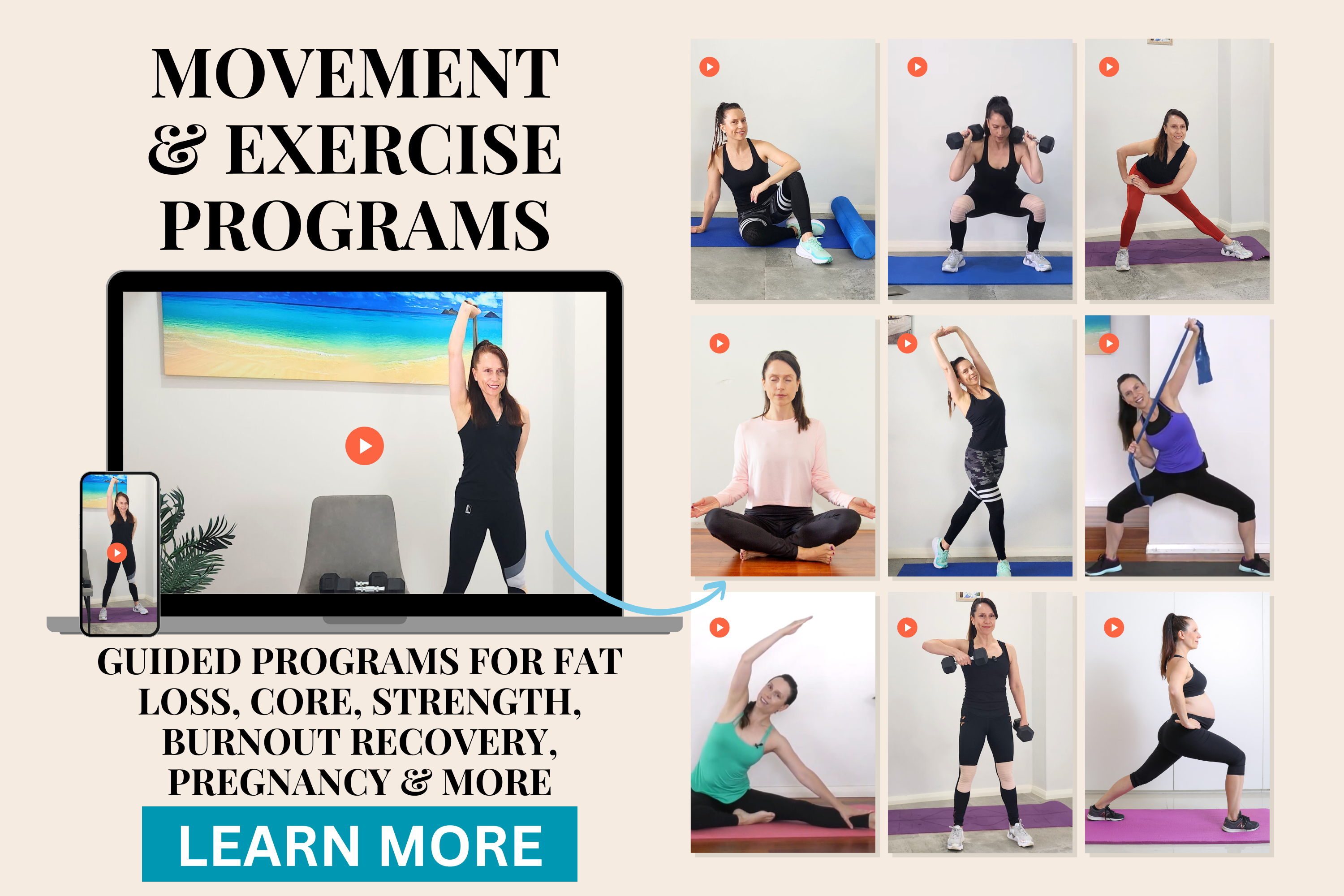 Check out my curated collection of programs that have helped people worldwide. Whether you are needing a body reshape, fat loss, burnout & stress recovery or a pregnancy plan, I've got you covered! Explore the categories and get your journey started today.