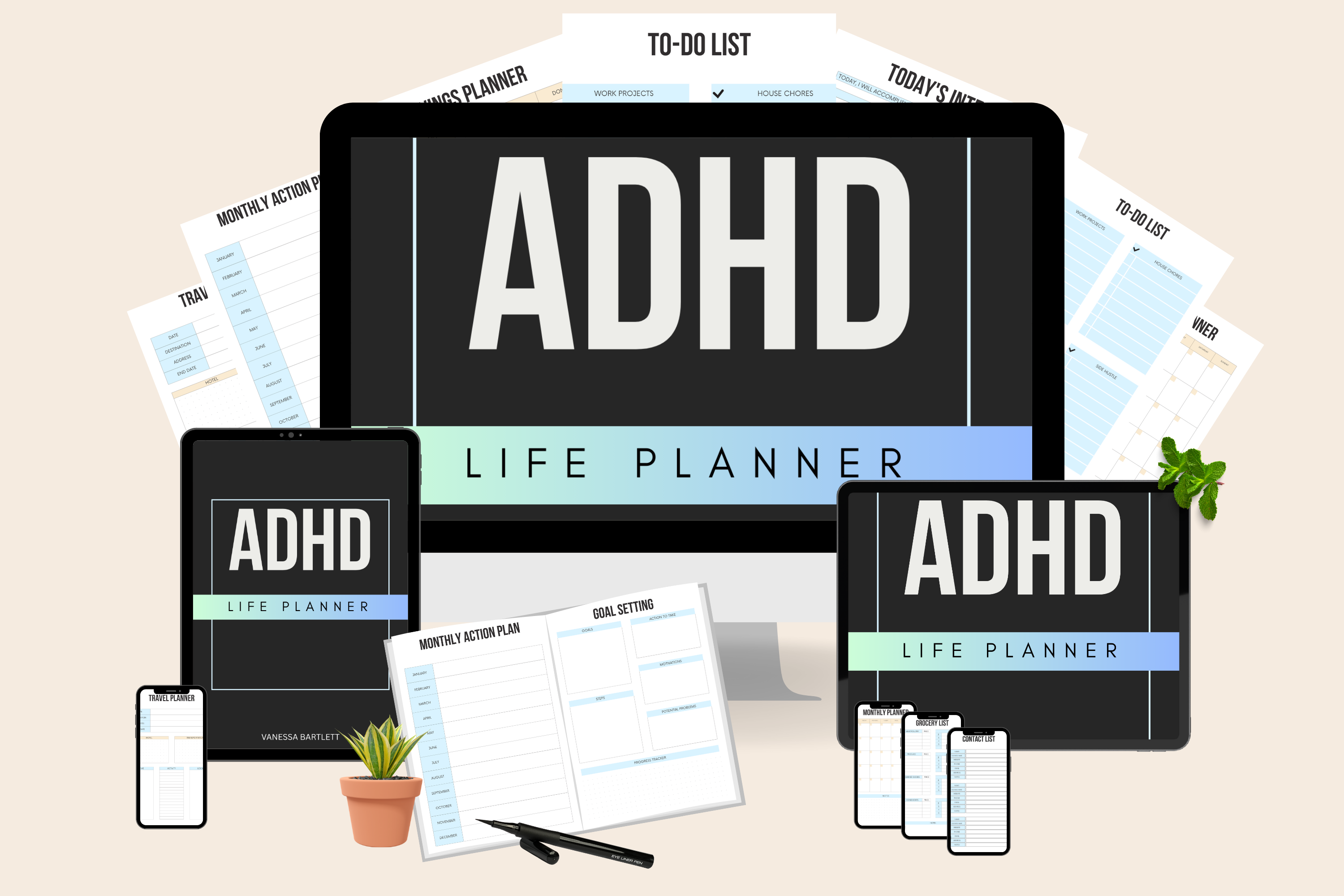 Complete Kit for ADHD Minds | Plan & Achieve In All Life Areas | Simple Planners To Help You Easily Categorise