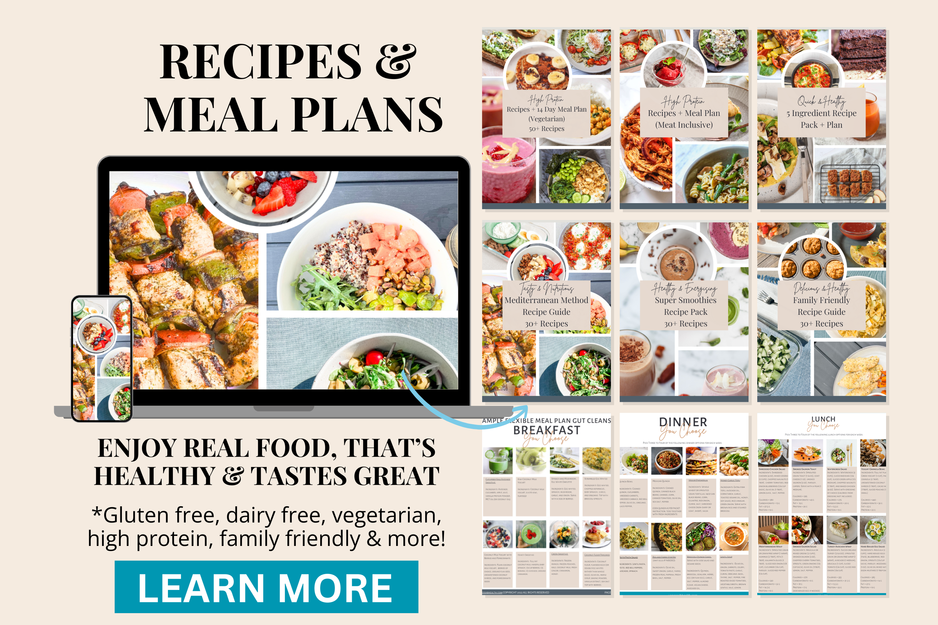 The way you fuel your body and mind matters! If you want to boost your metabolism and increase your energy naturally, a nutrionist-created food plan and recipe pack is the way to go. Enjoy plans like high protein, gut-friendly, gluten & dairy free, vegetarian, smoothie packs, mediteranean meals and more.