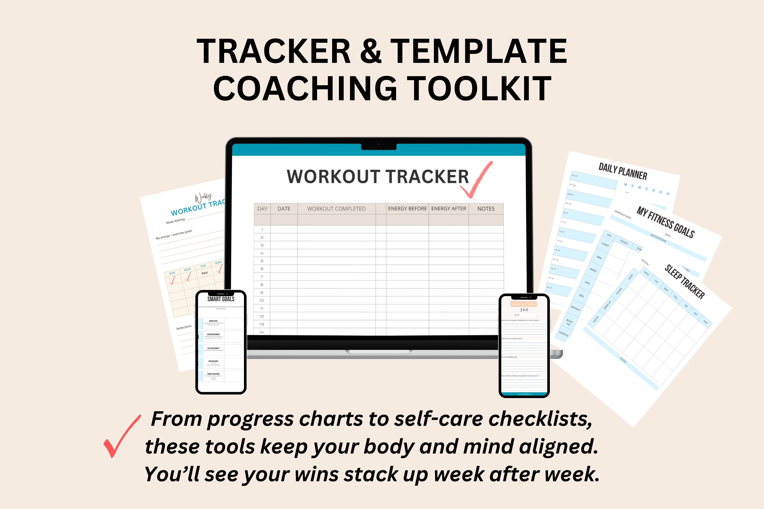Track your workouts, progress, and self-care with these easy-to-use tools so you can see and celebrate your results.