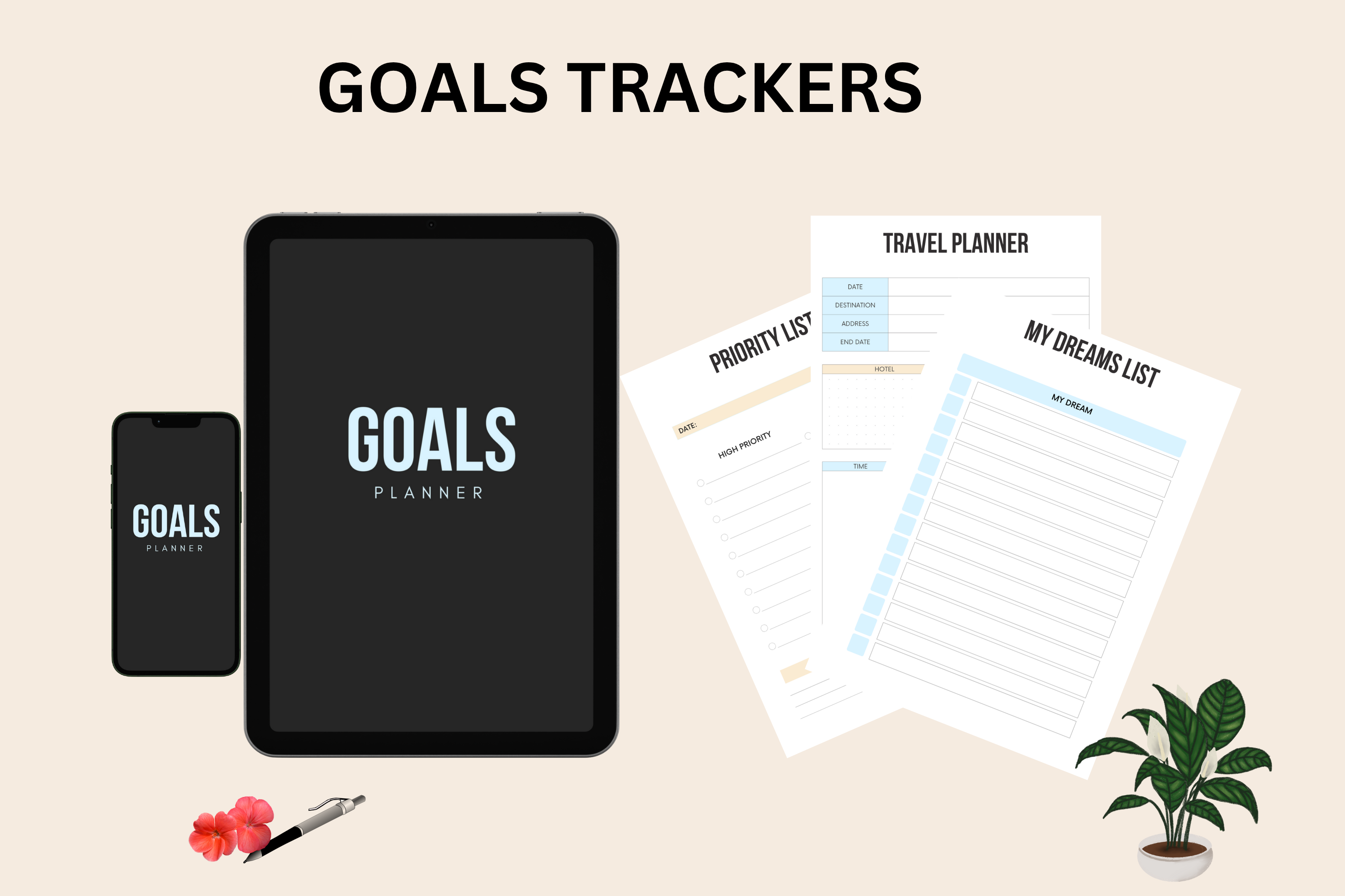 Break big dreams into doable steps with trackers that help you set, plan, and take action on both small and large goals.