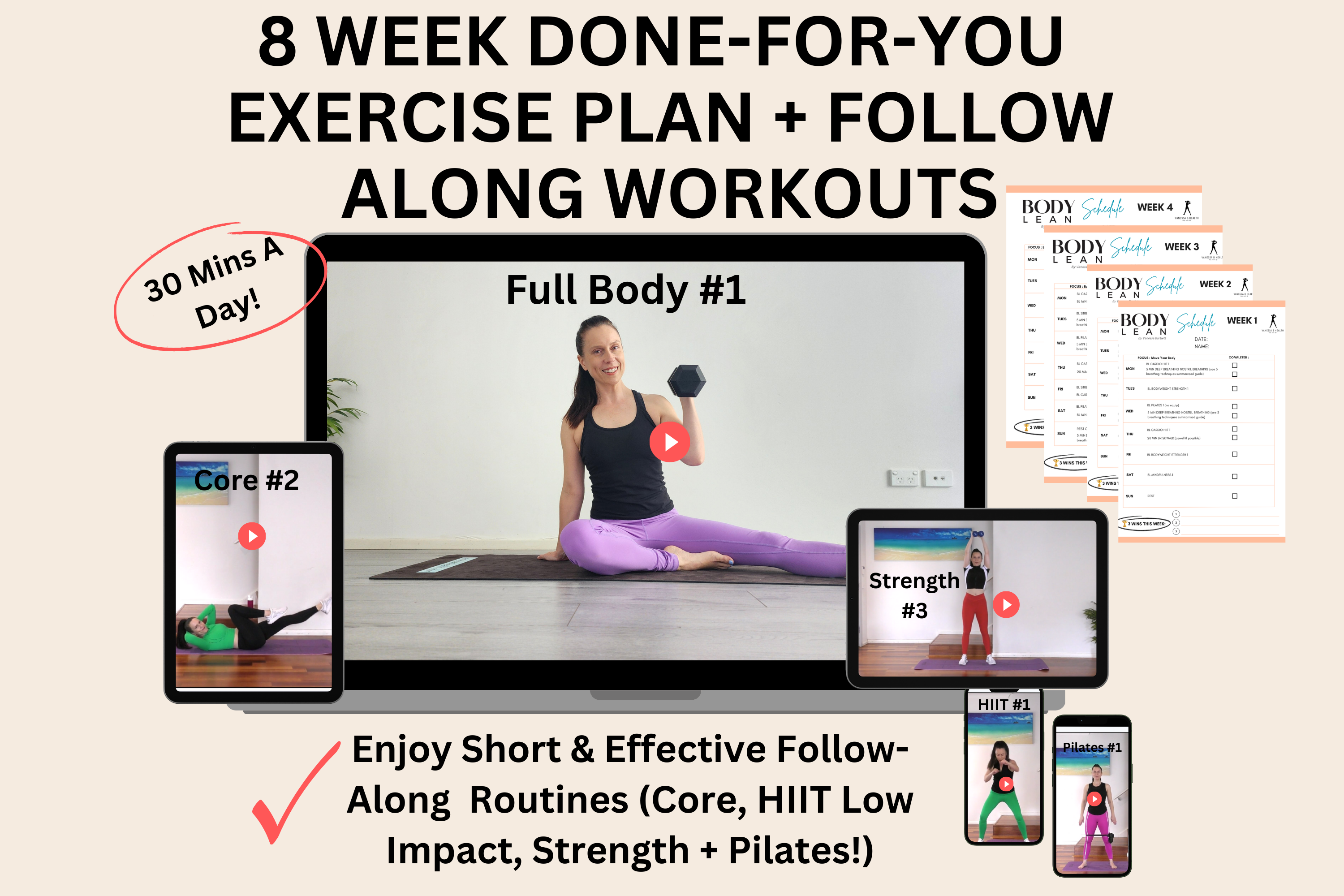 8-Week Done-for-You Workout Schedule – Every day is laid out so you can stay consistent, build strength safely, and see real results week after week.