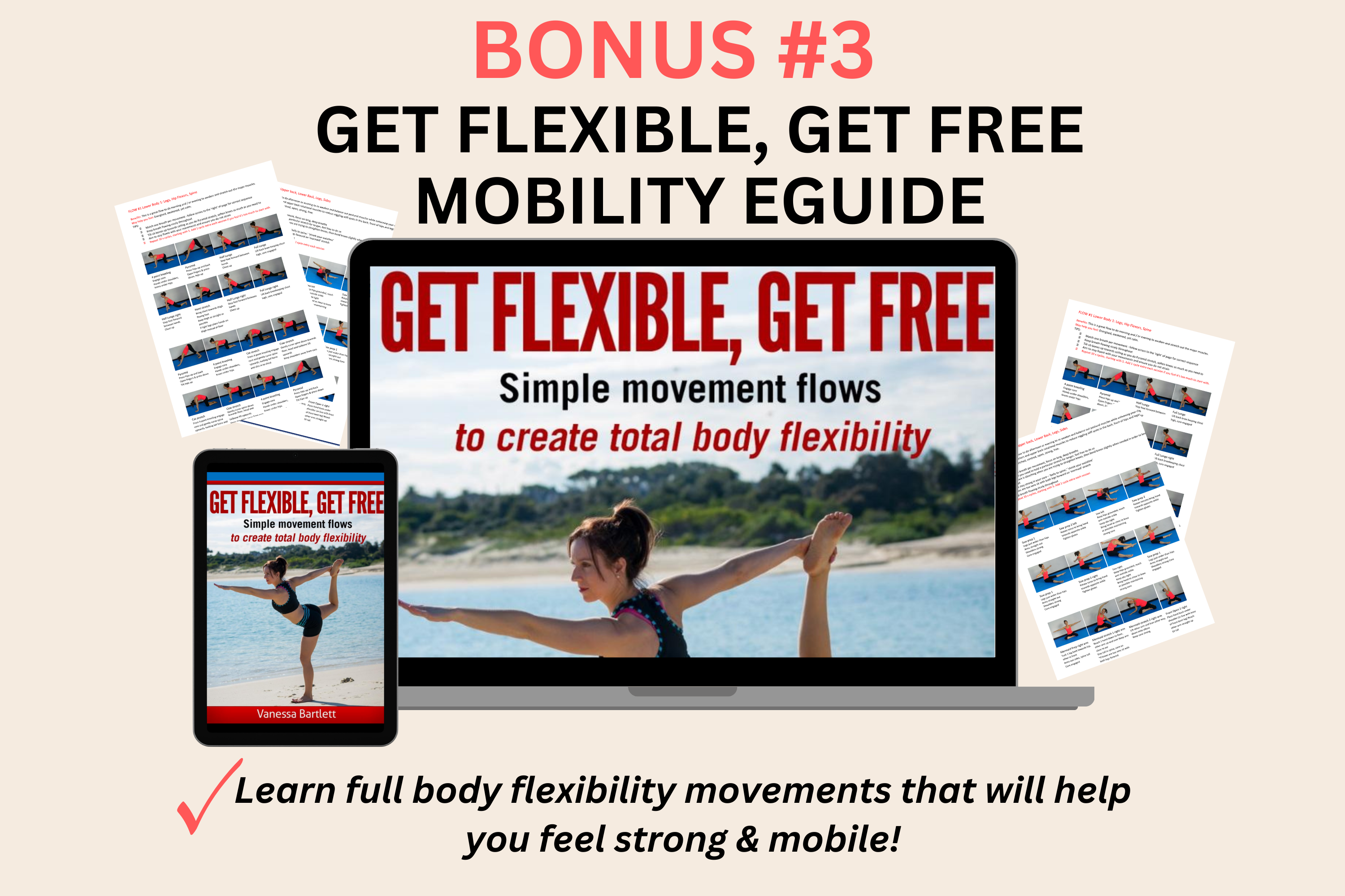 Unlock your full range of movement with the ‘Get Flexible, Get Free’ eGuide — with full-body stretch flows designed to improve flexibility, boost mobility, and leave you feeling lighter, looser, and more energized.