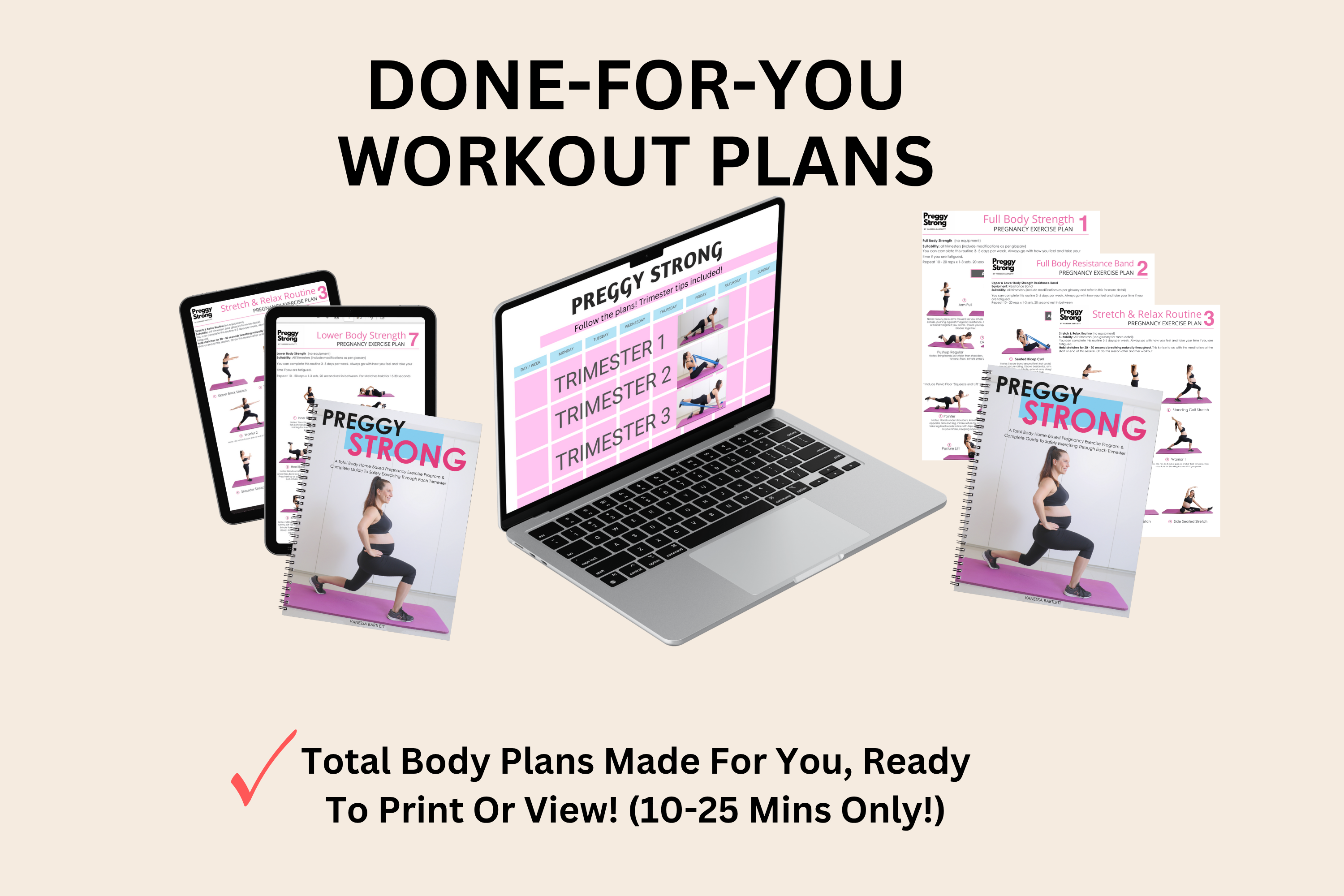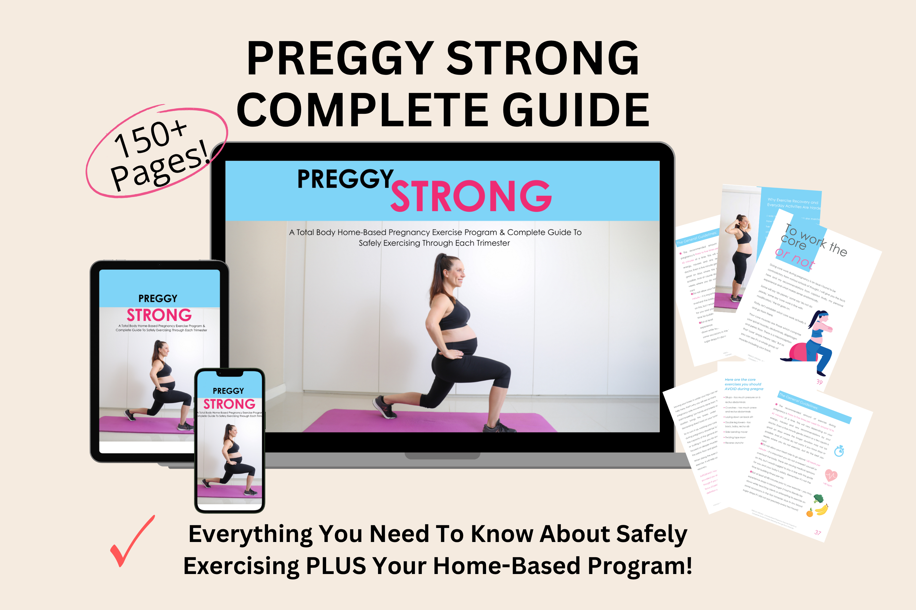 150+ pages of expert, easy-to-follow guidance showing you exactly how to exercise safely from home in every trimester. Includes clear trimester modifications, insights into how your body changes, and empowering tips to help you move with confidence and energy throughout your pregnancy.