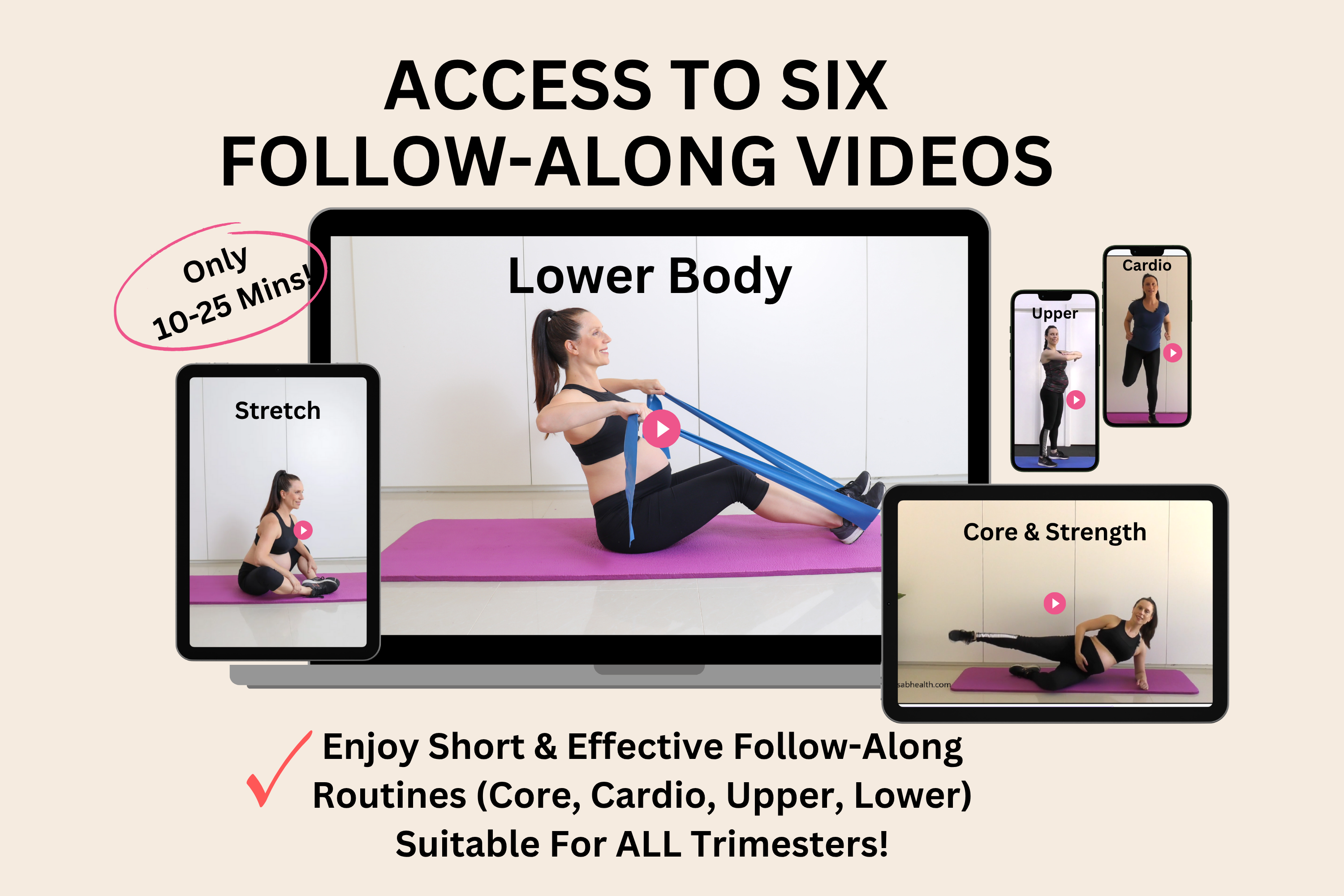Short, effective, and safe for all trimesters — perfect for those days you just want someone to guide you step-by-step. Each session is under 25 minutes, so you can boost your energy without feeling drained, even on low-energy days