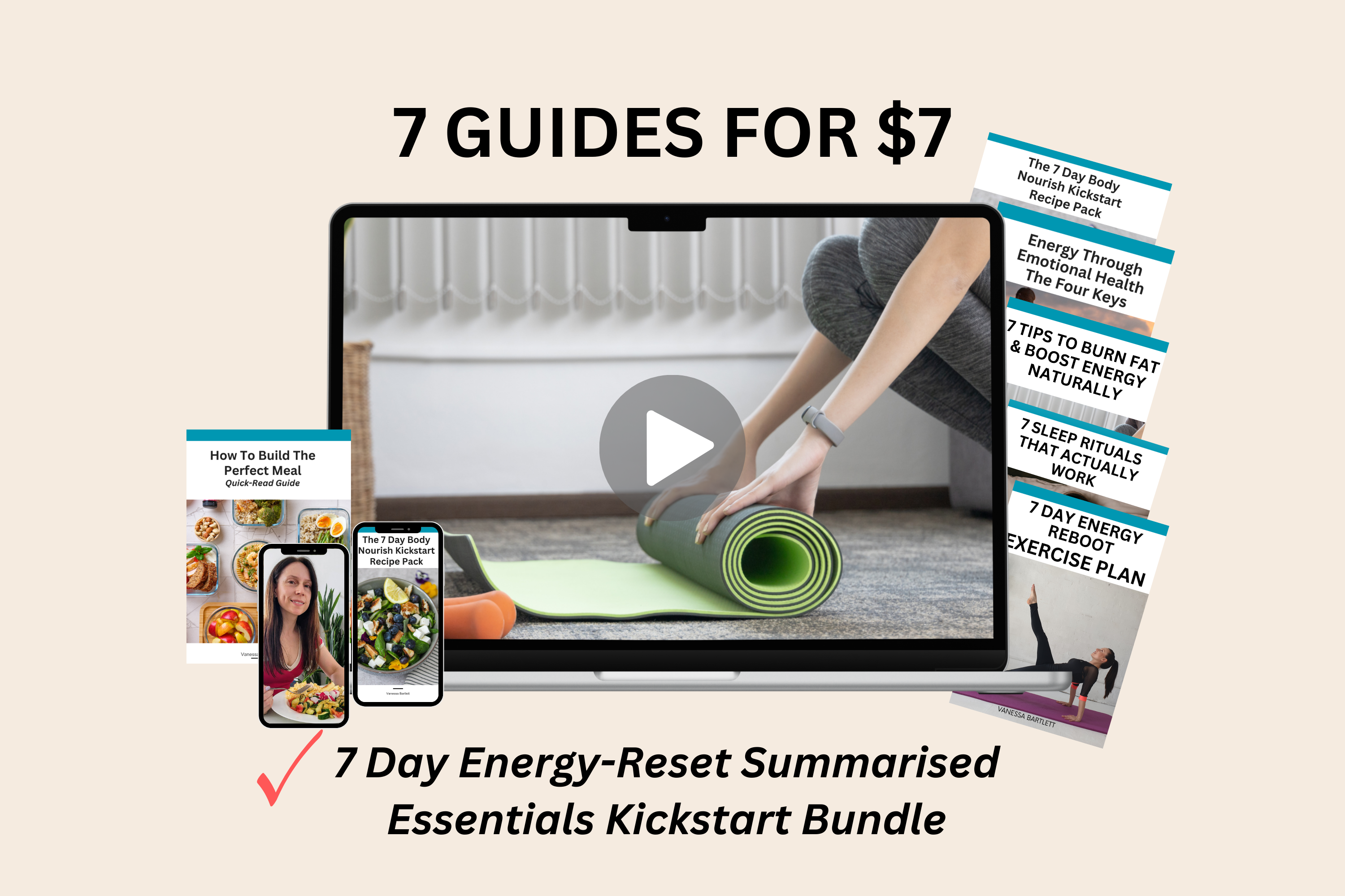 Get 7 Energy-Boosting Kickstart Guides for $7! The essentials on what you need to know to start increasing your energy, foundational fitness, and get some mojo back into your life.