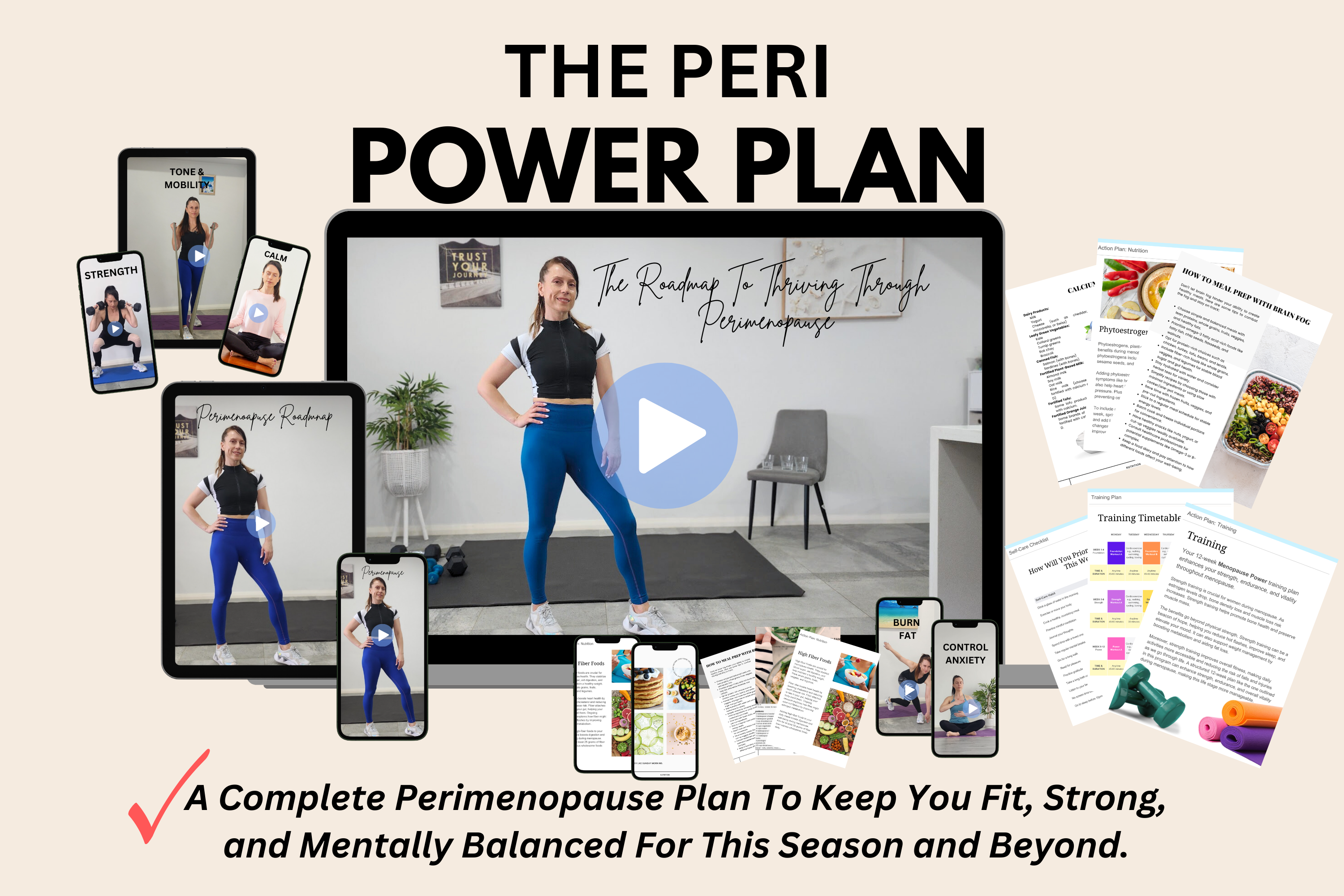 A proven plan to help you thrive through the perimemopause years. You will enjoy balanced movement, strength, mindset, nutrition essentials and practical wellness tools in an easy to follow guide. The Peri Power Plan addresses all the major body and health changes that pop up during this transitional time and will teach you exactly how to handle them with ease.